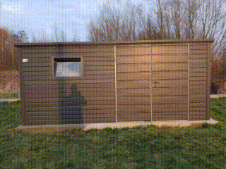 Záhradný domček 4,5x3m – Dvojkrídlové dvere – Okno – Antracit – Strecha spád dozadu TKD205