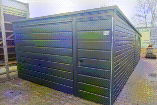 / Plechová garáž 4×7 – výklopná brána – dvere – plastové okno výklopné – antracit – strecha spád dozadu TKD198