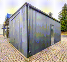 / Plechová garáž 5×6 m – dvojkrídlové dvere – okno – antracit – strecha spád nabok TKD260