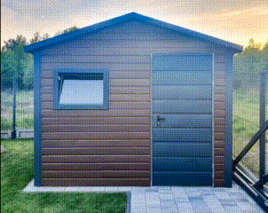 / Záhradný domček 3x3m – Dvere – Okno – Tmavý Orech – Antracit – Rýny – Škridľoplech – Strecha dvojspádová TKD243