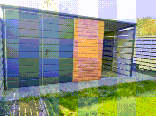 Prístrešok 1,5x3m zabudovaný panelmi farba antracit mat RAL 7016